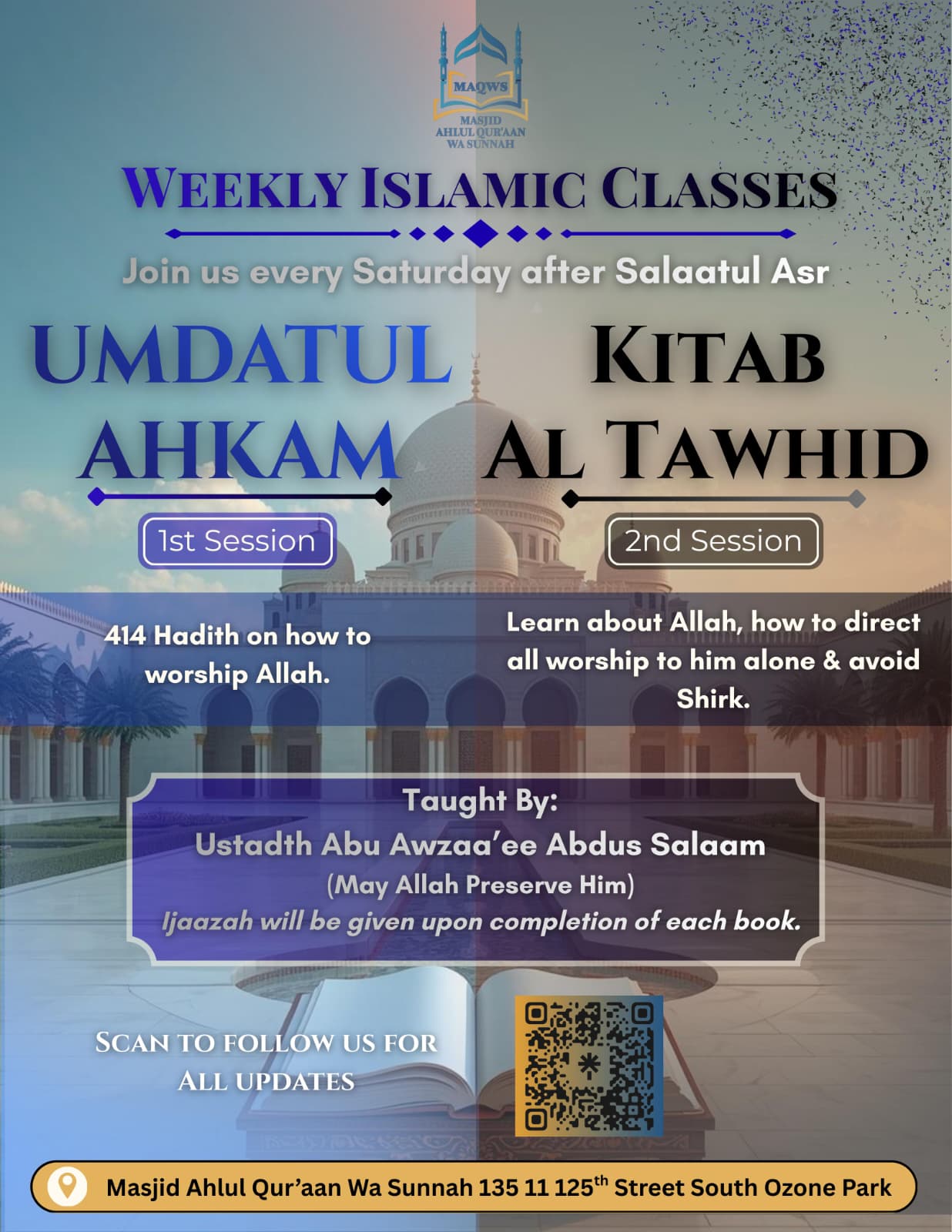 Our Masjid was established in 1995 by a group of young and energetic brothers eager to learn the sunnah. At that time many brothers squeezed in a small basement apartment to establish the daily salah. In 1996 the location was moved to a larger basement on 150th St. and Hillside Ave, but, due to the rapid growth of the community this location again became inadequate. In 1998 the masjid moved to the 109 Ave and Van Wyck location at first occupying the front section of the first floor and the basement, in 2001 we had to acquire the upper floor as well and very soon that space seem insufficient so in 2005 another 1200 sq ft space on the back section of the first floor was acquired, and guess what?